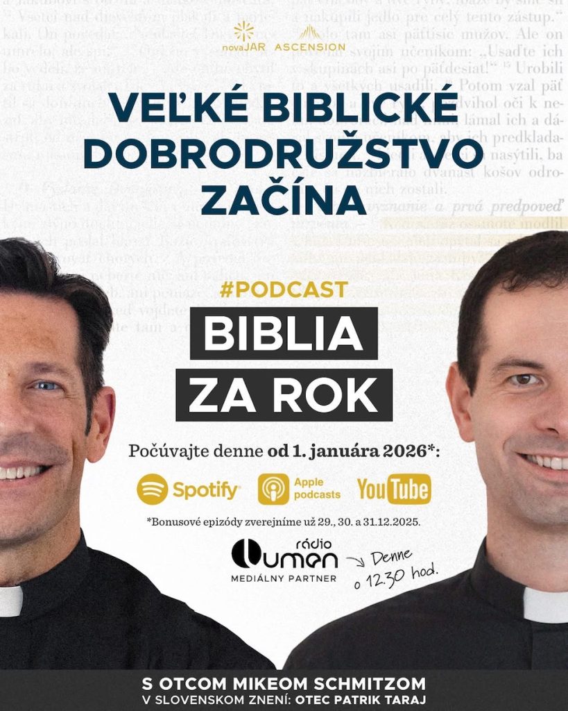 V podcaste Biblia za rok ťa v rámci jeho 365 epizód v trvaní 20-25 minút prevedie otec Mike Schmitz (v slovenskom znení otec Patrik Taraj, špirituál kňazského seminára v Spišskej Kapitule) celým Svätým písmom. Okrem samotného Písma nájdeš v každej epizóde komentár, zamyslenie a modlitbu.