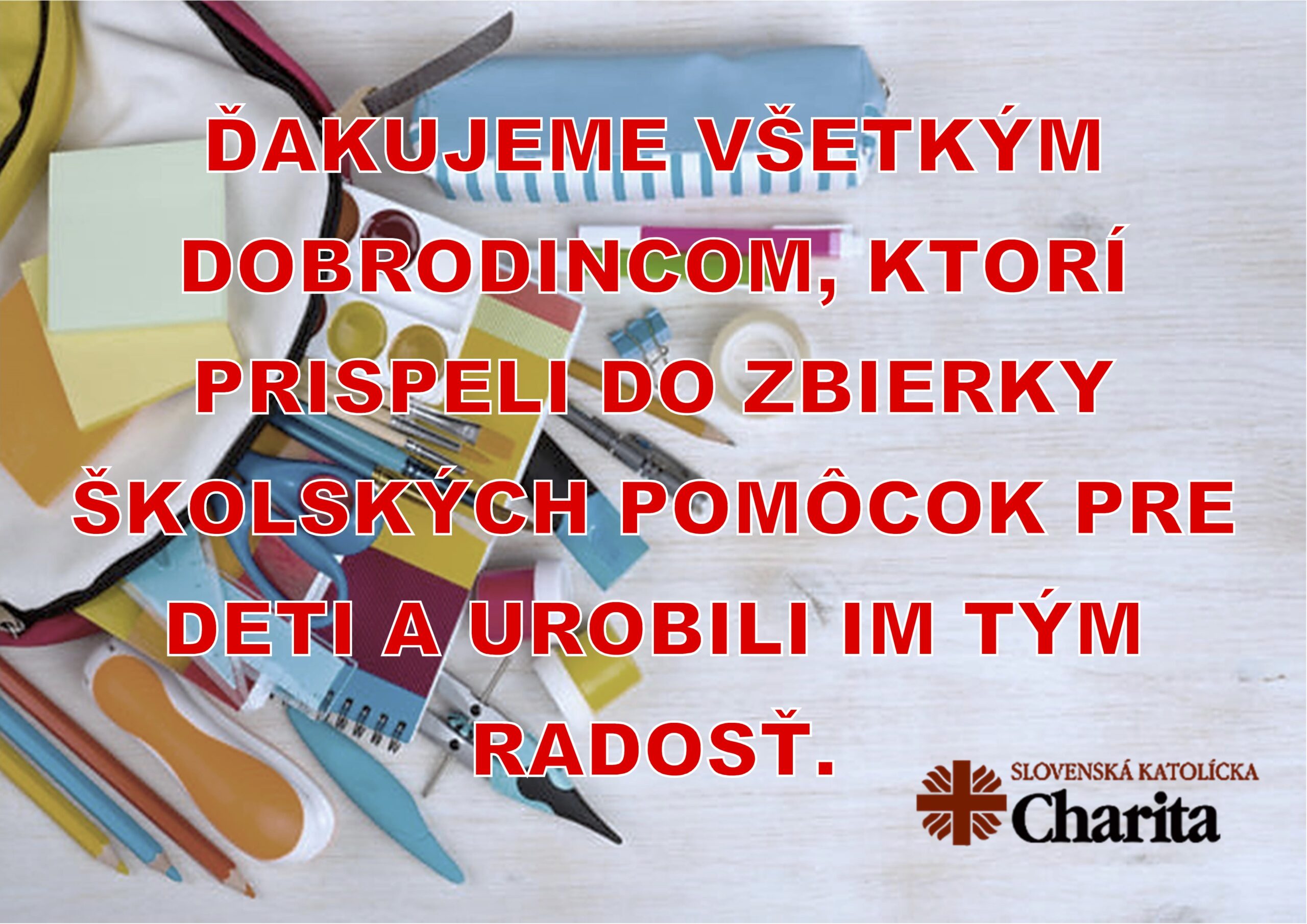 Podakovanie za akciu: https://mocenok.fara.sk/zbierka-skolskych-pomocok-vo-farnosti/ 22. septembra 2022Post navigationPreviousPrevious post:Výstava Dary pápežov SlovenskuNextNext post:Kurz Samuel – pre slobodných mladých ľudíMožno Vás tiež zaujme:Pozvánka: Sväté omše k 10. výročiu odchodu do večnosti kardinála Korca23. októbra 2025Sviečka za nenarodené deti 2025 – avízo23. októbra 2025Karneval Svätých18. októbra 2025Pozvánka do Košíc: Konferencia Evanjelium života18. októbra 2025Pozvánka: Slávenie Jubilea rodín Nitrianskej diecézy18. októbra 2025Adorácia s piesňami chvál – 11. október 20255. októbra 2025